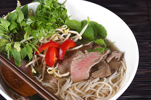 Phở bò - Reisbandnudelsuppe mit zartem Rindfleisch