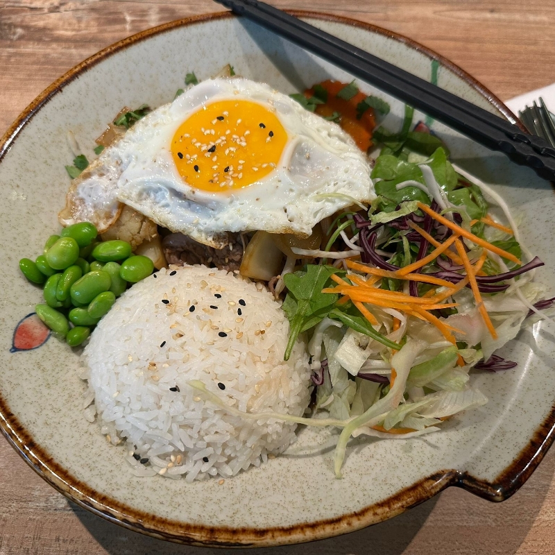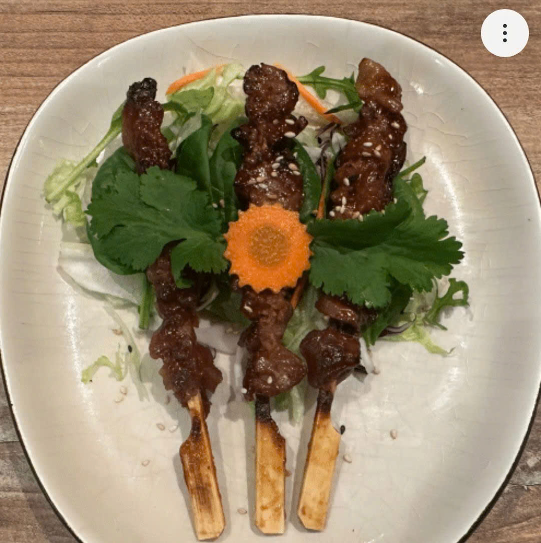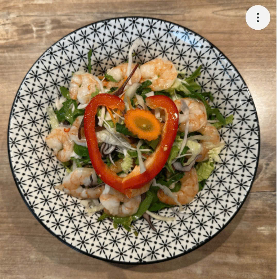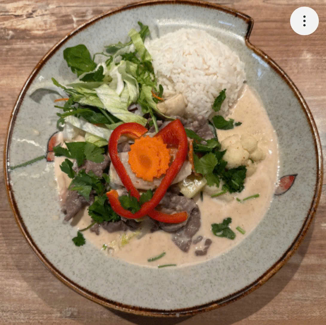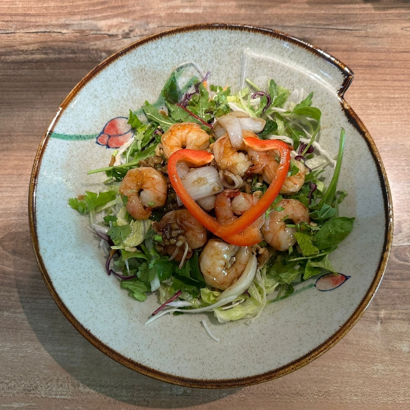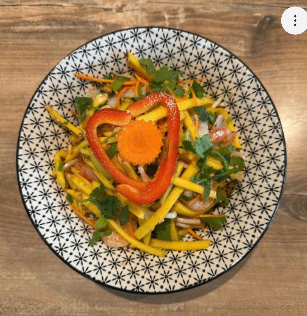 Mit Zitronengras-Chili gewürztes, zartes Rindfleisch im heißen Wok gebraten, serviert mit Reisnudeln, Salat, Sojasprossen, Basilikum in leckerer lngwer Chili-Fischsoße, verfeinert mit Erdnüssen.