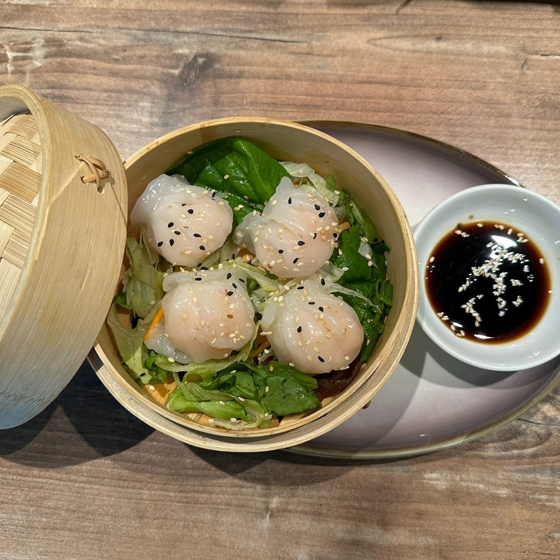 Glasnudeln mit frischem Hühnerfilet, zubereitet in schmackhafter Brühe und Sojasprossen. Verfeinert mit Koriander und Schnittlauch.